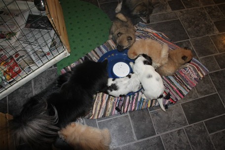 Fiddeli adopterade oxå 2 st moderlösa kleiner munsterländer valpar.